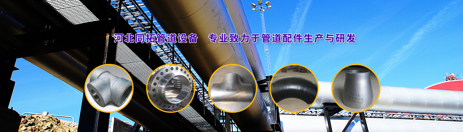 同拓管件主營:彎頭、三通、異徑管、管帽、法蘭、人孔、鍛造配件、電廠配件